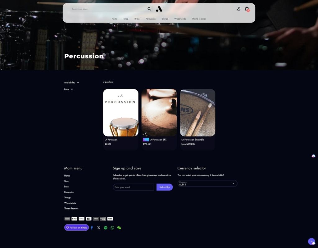 Shop page example