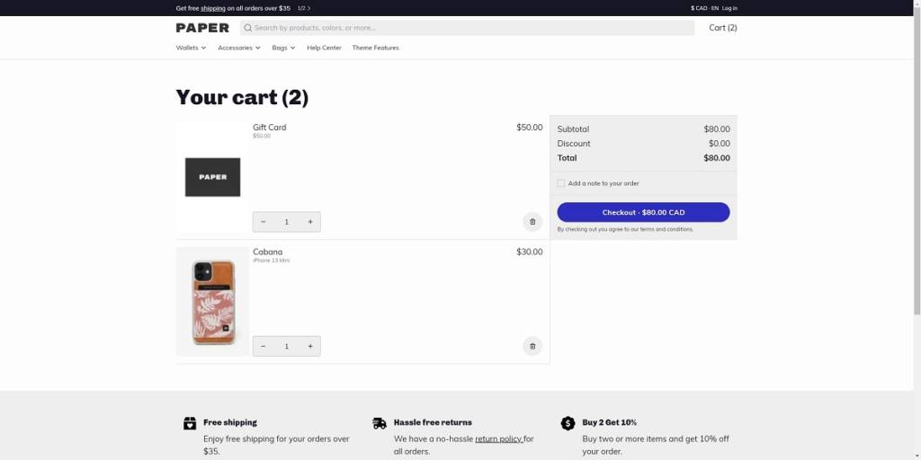 Cart page example