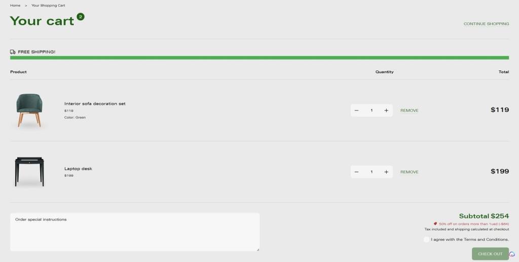 Cart page example