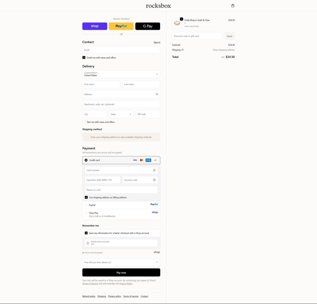 Rocksbox Checkout Page Example