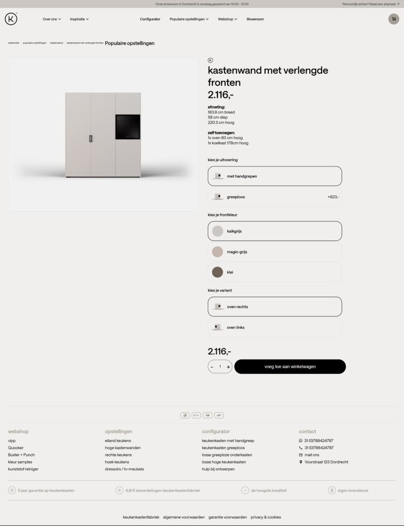 KeukenKastenFabriek’s website is modern and highly functional, with an interactive kitchen configurator, clean layouts, and emphasis on customization and transparency. Their product line centers on modular kitchen cabinets, full kitchen setups, and related accessories — all touted as factory-premounted and quality engineered.