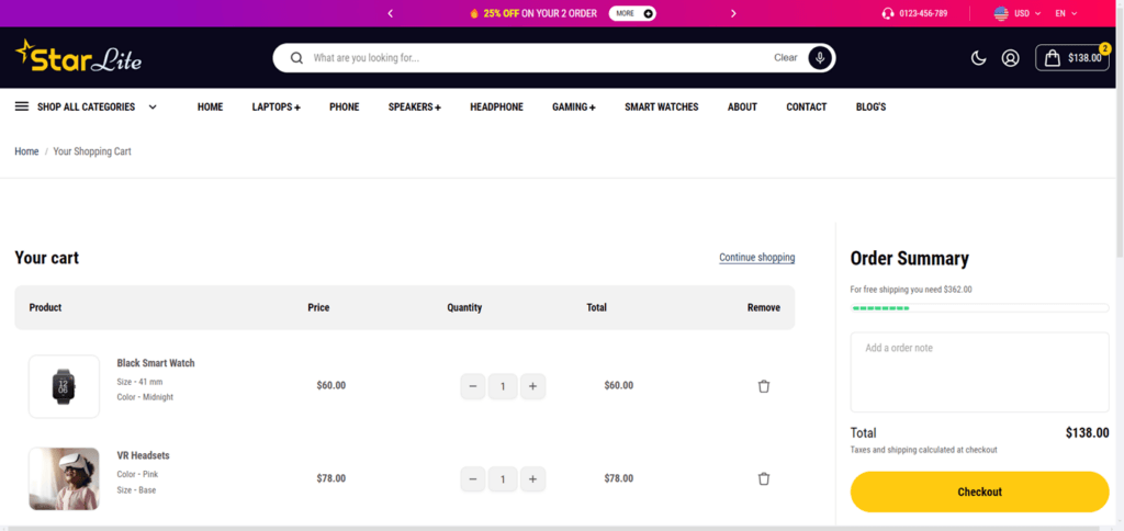 Cart page example