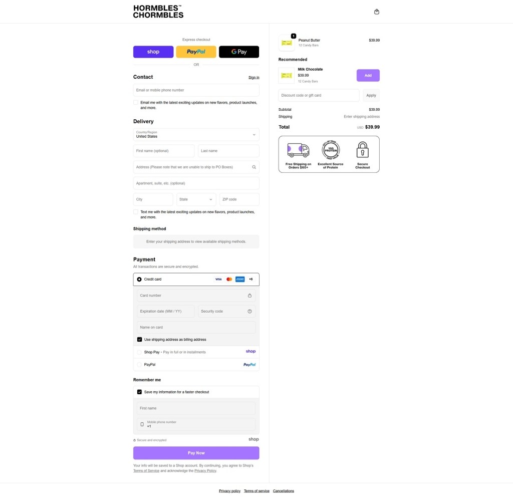 Hormbles Chrombles Checkout Page Example