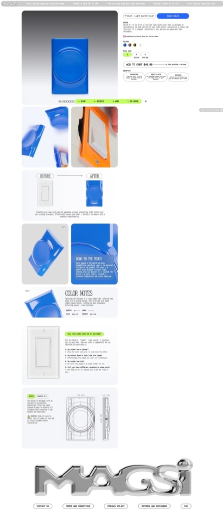 MagsiDesign offers decorative, renter-friendly light switch covers and colourful “liminal bars” that upgrade ordinary switches into intentional design elements. The website features a clean, modern e-commerce layout with simple navigation, bold product visuals, and benefit-focused copy that highlights ease of installation and aesthetic impact. Overall, the design supports quick browsing of colour options and product details while reinforcing a lifestyle-oriented approach to small interior-design upgrades.