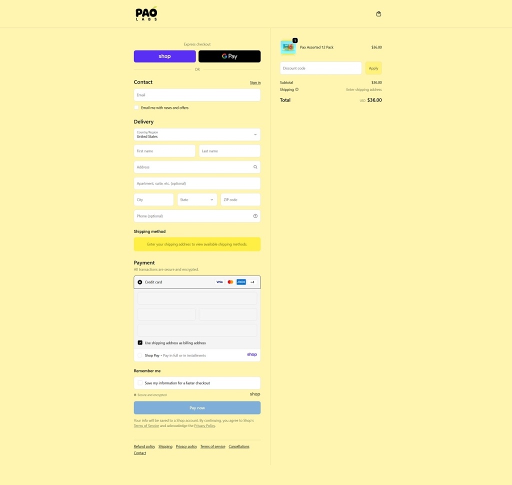 Pao Labs Checkout Page Example