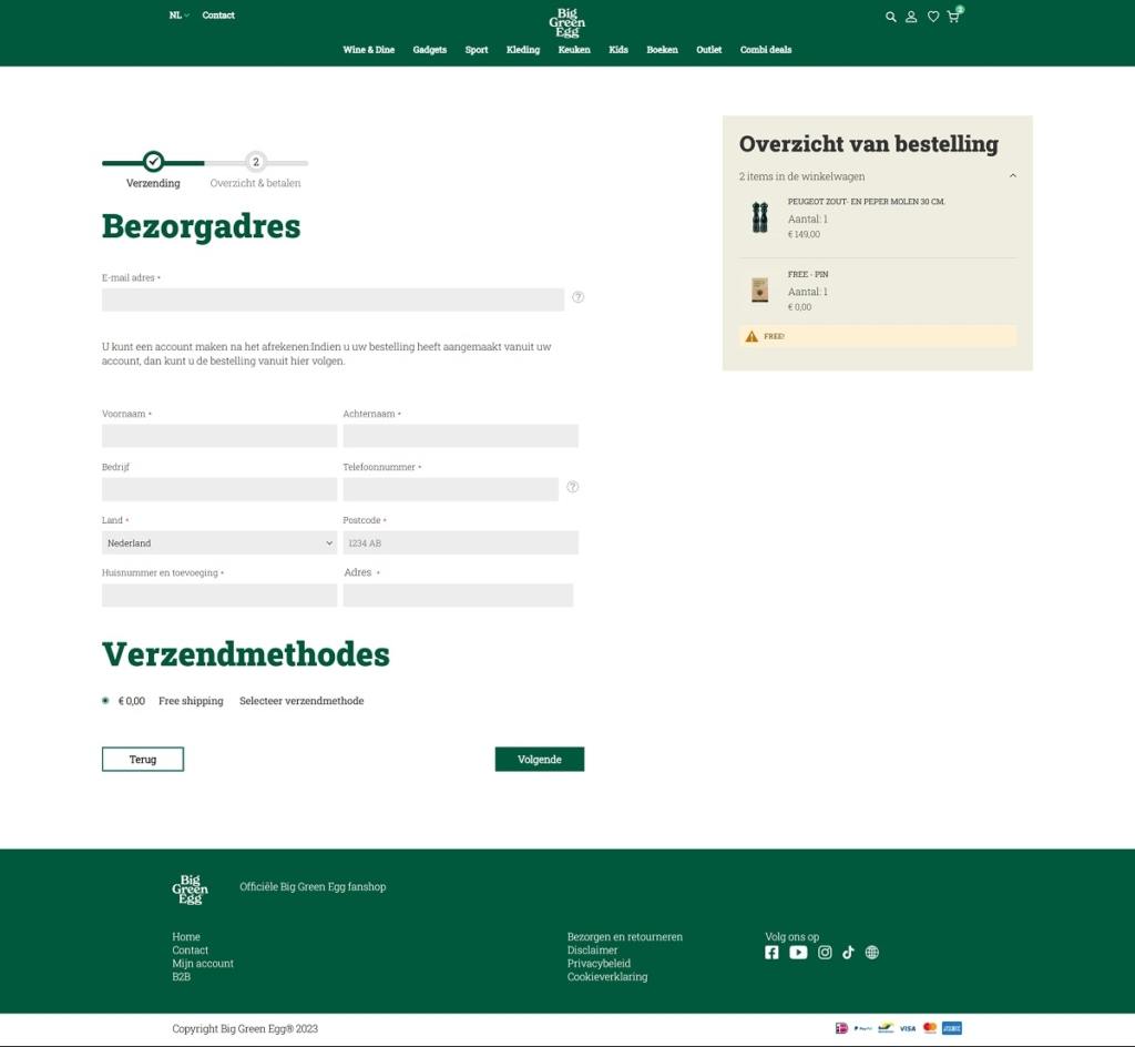 Big Green Egg Checkout Page Example