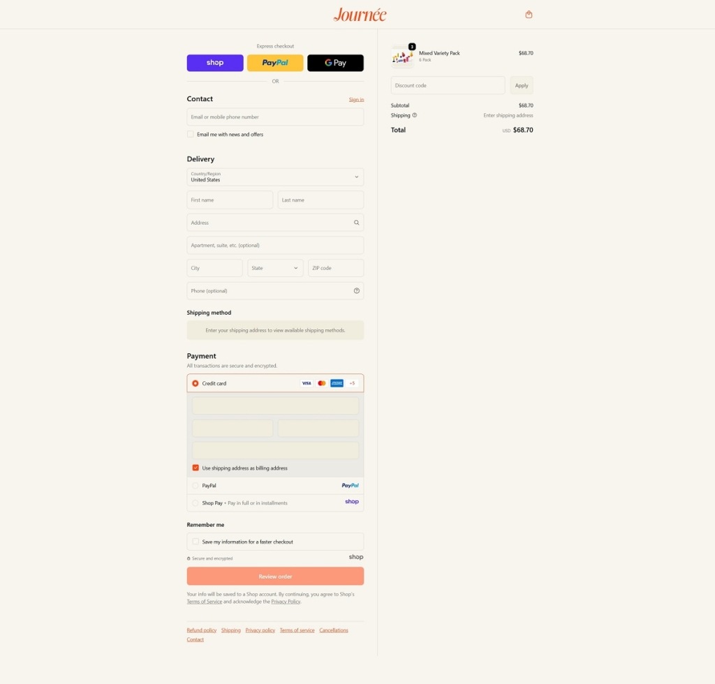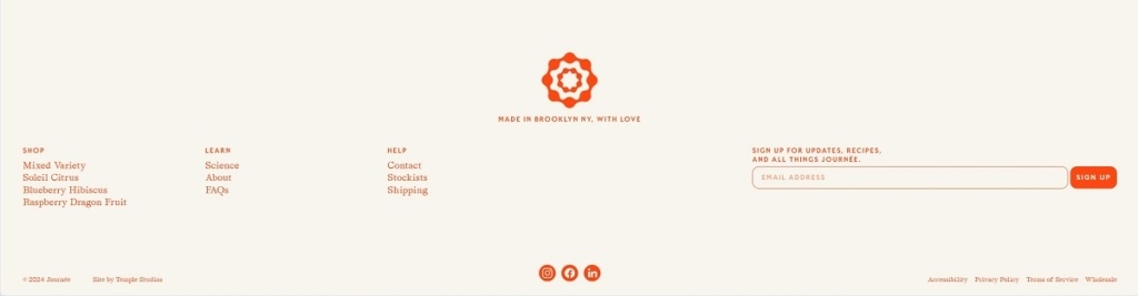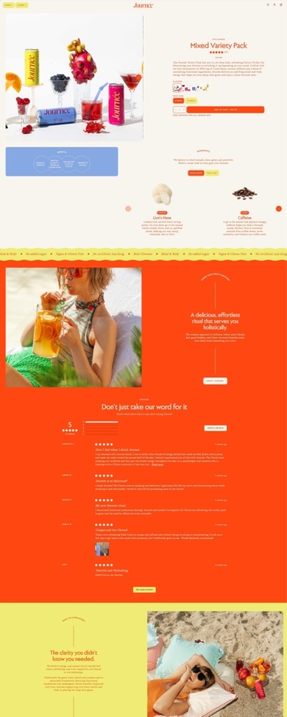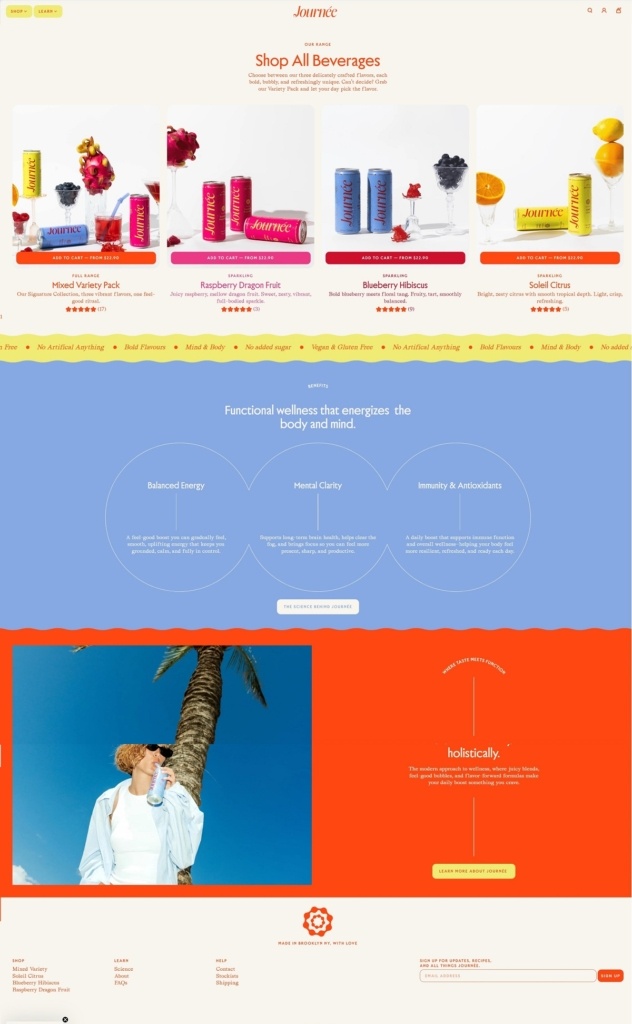 Drink Journée’s website is bright and minimalist, with clean navigation and high-quality imagery that puts the focus squarely on their beverages. Their product line centres on sparkling antioxidant waters made with natural botanicals and functional ingredients for hydration and wellness. The overall design feels fresh and approachable, making it easy to explore flavours, benefits and shop online.