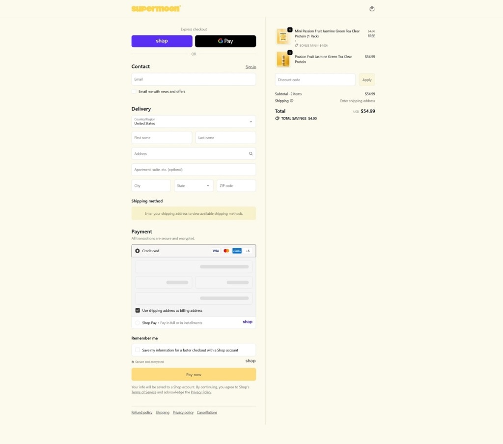 Supermoon Checkout Page Example