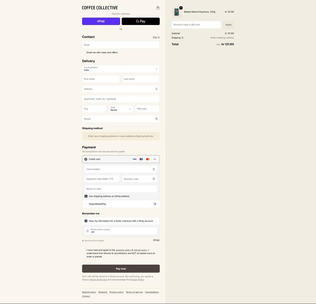 Coffee Collective Checkout Page Example
